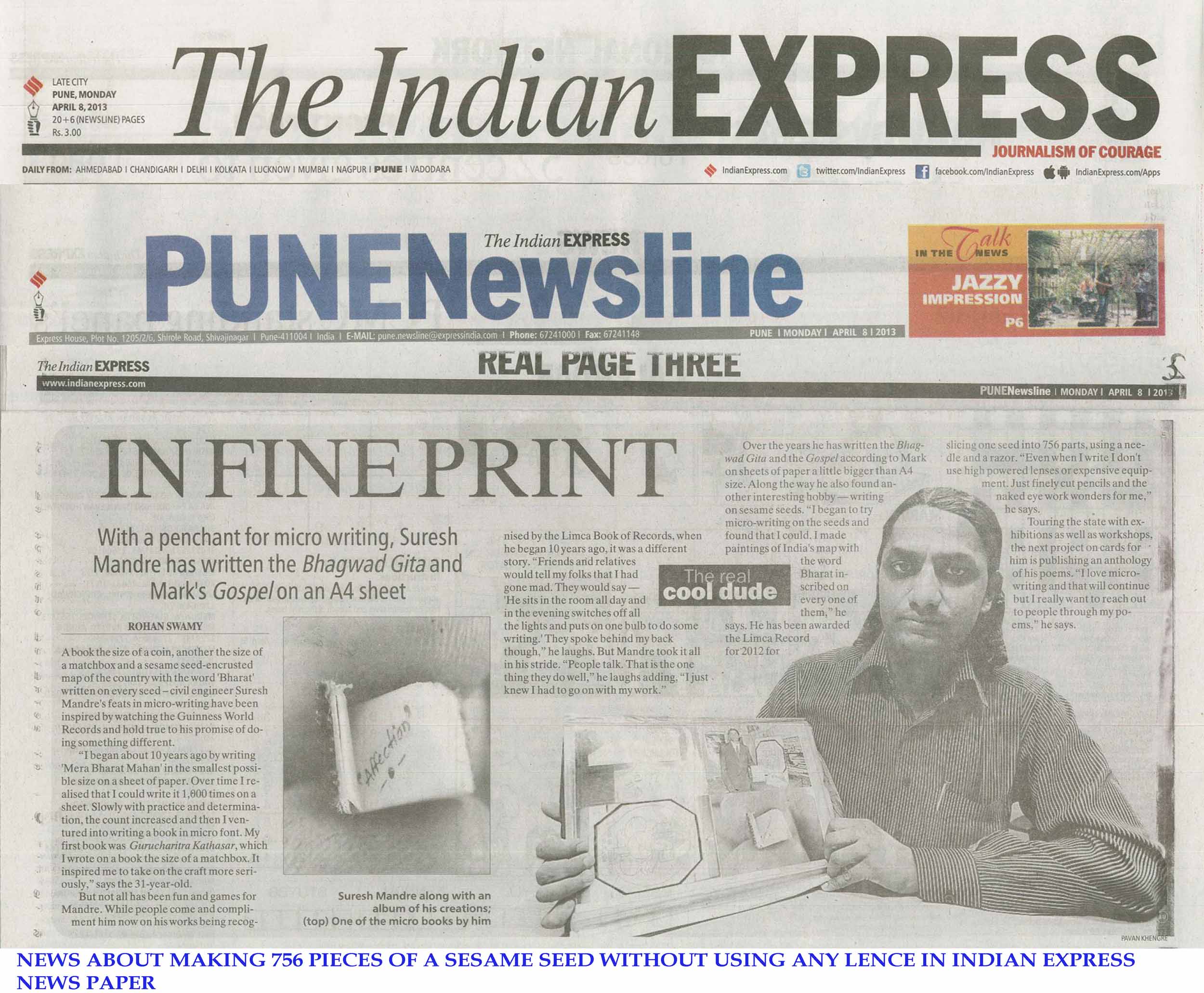 S NEWS KOLHAPUR : ३ रे राज्यस्तरीय अक्षर संमेलन, शिवाजी विद्यापीठ कोल्हापूर येथे २४, २५, २६, मे २०२४ रोजी संपन्न झाले. या संमेलनामध्ये सूक्ष्म कलाकृतीकार सुरेश मंदरे हे सहभागी झाले होते.